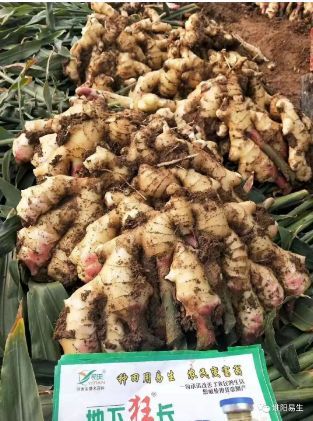 2019年10月24日,我們易生科技售后服務(wù)組在姜戈莊回訪(fǎng)噴施地下狂長(cháng)大姜的效果。噴施地下狂長(cháng)的大姜顏色金黃光亮,片型大,姜絲長(cháng),多,粗,口感辛辣,姜味濃,姜指頭粗胖,產(chǎn)品高!