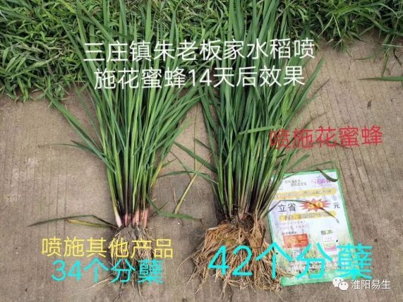 我們看到同一塊噴施遍花蜜蜂的效果,分蘗十分明顯,葉片濃綠肥厚,根系發(fā)達,莖稈粗壯.